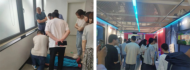 全體人員先后參觀體驗(yàn)了氣象預(yù)警體驗(yàn)、VR火災(zāi)隱患排查與火場(chǎng)逃生、全景三維模擬滅火體驗(yàn)、觸電體驗(yàn)等專題區(qū),學(xué)習(xí)了氣象災(zāi)害、雷雨避險(xiǎn)、火災(zāi)逃生與自救逃生等相關(guān)知識(shí),并體驗(yàn)了火災(zāi)逃生、地震避險(xiǎn)等模擬演練,綜合視覺(jué)、聽覺(jué)、觸覺(jué)等多方位感受,沉浸式體驗(yàn)各種災(zāi)害所帶來(lái)的破壞力。在心肺復(fù)蘇與急救專題區(qū),工作人員使用場(chǎng)館道具,為大家普及心肺復(fù)蘇術(shù),以防不時(shí)之需。此次參觀體驗(yàn),提高了全體員工防災(zāi)減災(zāi)意識(shí),進(jìn)一步掌握了避災(zāi)、自救、互救技能,有效提升了應(yīng)對(duì)處置自然災(zāi)害、突發(fā)事件的能力和水平。