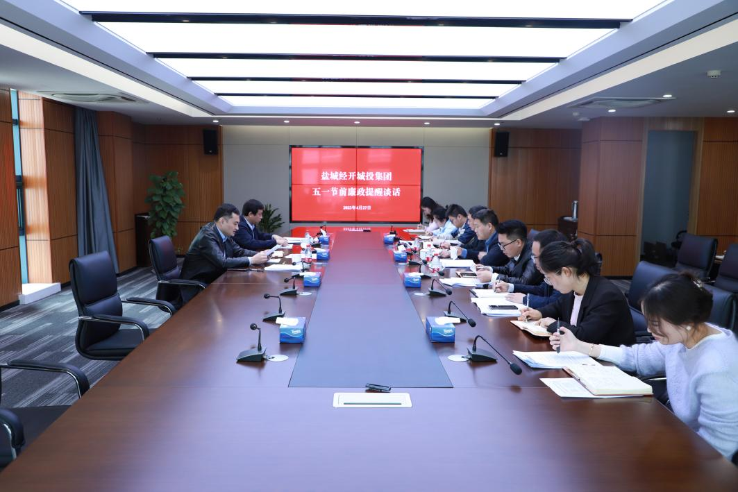4月27日上午,鹽城經開城投集團開展2023年“五一”節(jié)前廉政提醒談話,集團董事長王建旭主持會議并講話。