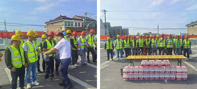 項目現(xiàn)場,張志軍詳細了解了項目作息時間、現(xiàn)場防暑降溫物資配備、高溫作業(yè)防護和安全生產(chǎn)措施等情況,并為每位施工人員分發(fā)了豐富的“清涼禮包”,包括礦泉水、藿香正氣水、人丹等一系列防暑降溫物品,承載著對工人健康與安全的深切關(guān)懷。他強調(diào),當下正值高溫酷暑時期,各項目部要統(tǒng)籌做好各項安全生產(chǎn)工作,重點抓好高溫天氣的防暑降溫、安全防護措施和應(yīng)急處置等工作,合理安排作業(yè)時間,切實維護施工人員的職業(yè)安全和健康。
